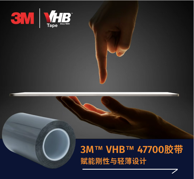 作为 3M™ VHB™胶带家族的新成员:3M™ VHB™ 47700 胶带在保持超薄形态的同时,通过材料科学的创新,将结构刚性、抗冲击性和尺寸稳定性推向了新高度,打破“既要又要”的行业难题。